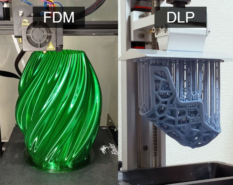 3Dプリントにも多様な造形方式が存在しますが、当店では主に「FDM方式」と「DLP方式」を用いております。