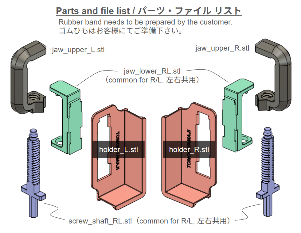 これはダウンロード商品です。お客様にてパーツを3Dプリント造形、組み立てて頂く必要があります。ゴムひもはお客様にてご準備下さい。